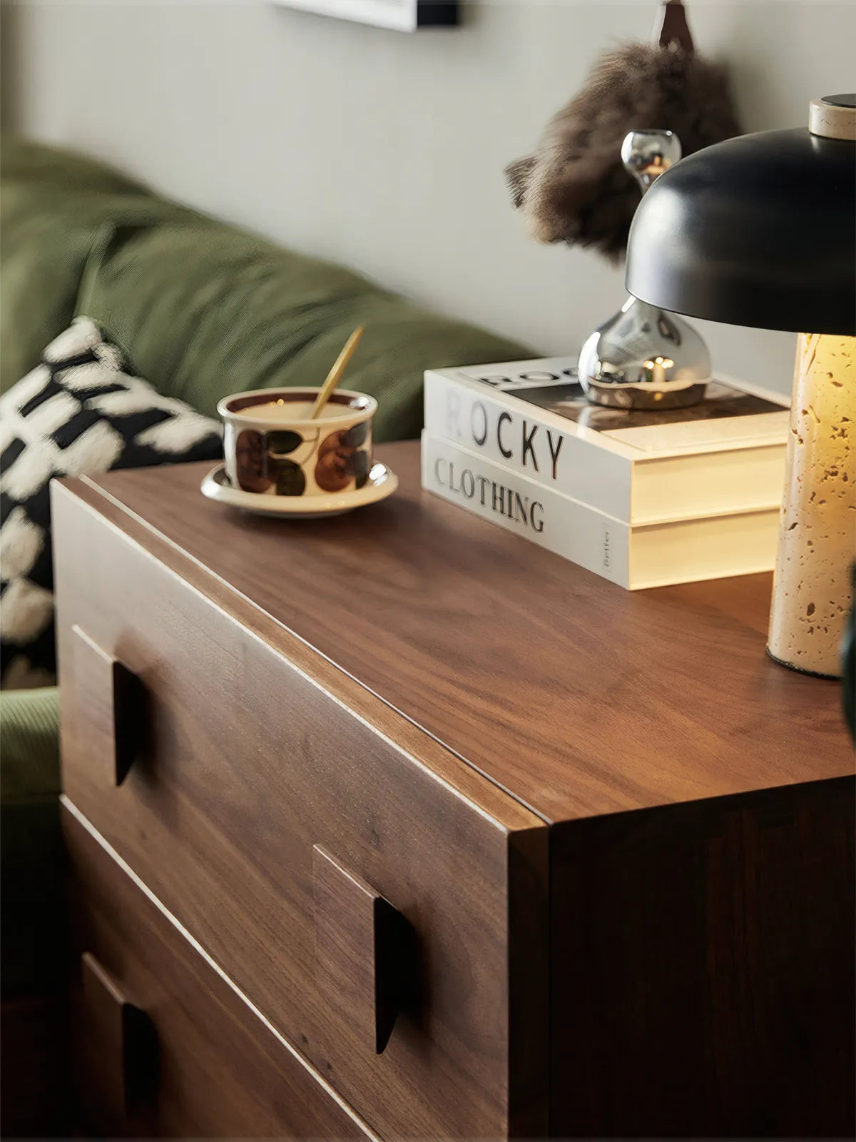 We exclusively utilize North American Black Walnut, prized globally for its rich, chocolate-brown heartwood and lustrous grain. Unlike stained woods that mask inferior materials, our solid walnut celebrates nature's artistry. No two pieces are identical; each drawer face tells a unique story through its grain patterns.