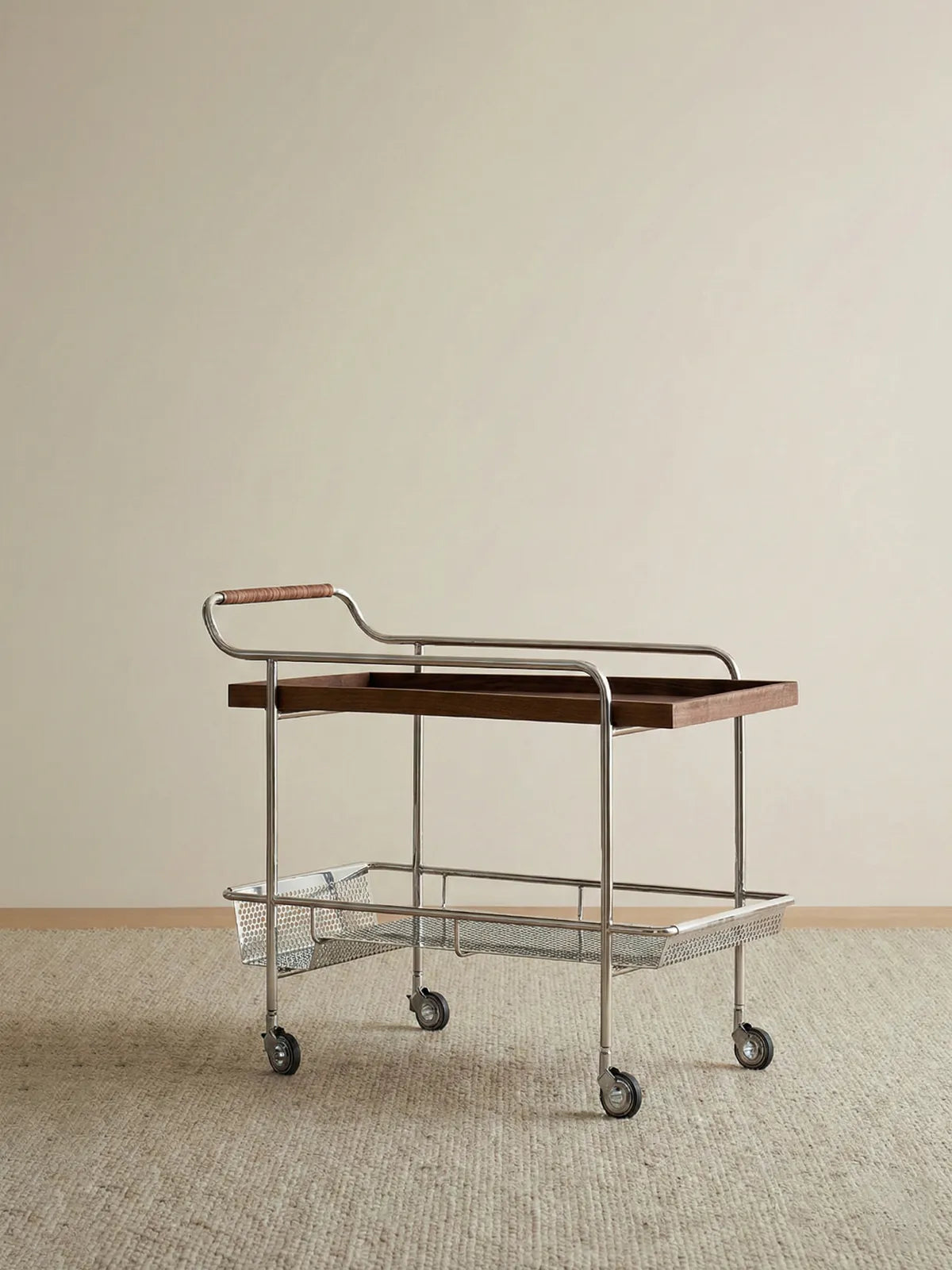 Precision Mobility: Equipped with custom-cast, high-performance casters, the cart glides silently across hardwood floors and plush carpets alike.