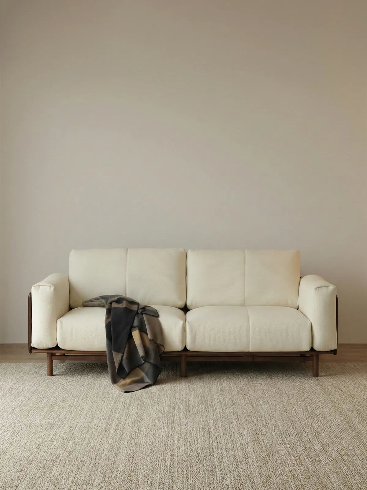 Premium materials define the Baxter’s luxurious appeal and set it apart from standard sofas. The solid Black Walnut frame is hand-polished with natural wax oil. This process reveals its stunning grain and highlights the natural beauty of the wood. This care creates an elegant wooden furniture sofa that draws admiration for its craftsmanship and style. Featuring a blend of down feathers and high-density foam, the sofa cushions offer cloud-like comfort with a perfect “Golden Ratio” fill. This design delivers excellent bounce-back support and a soft, inviting feel for every seating experience.