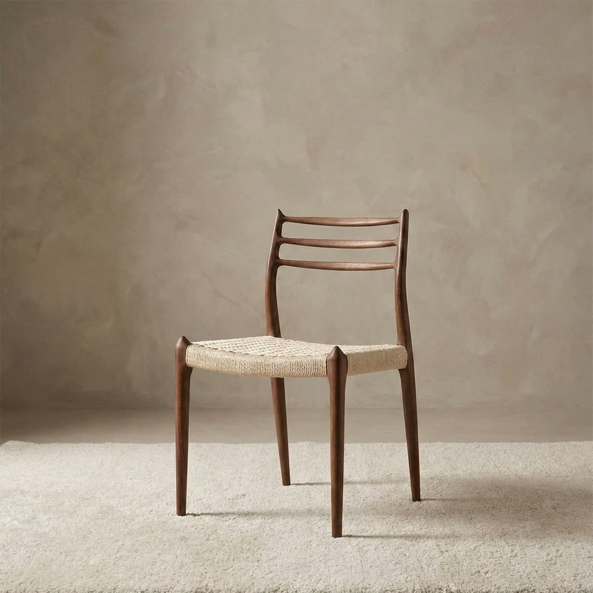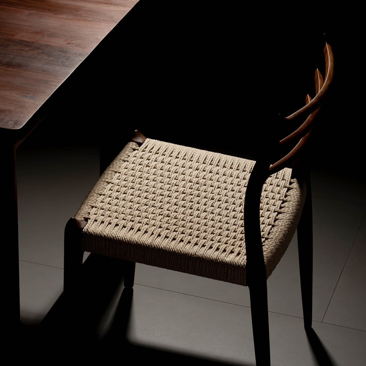 Aesthetics: The natural, blonde tone of the cord creates a striking, high-contrast interplay with the dark walnut frame, adding a layer of tactile warmth that softens the clean architectural lines.