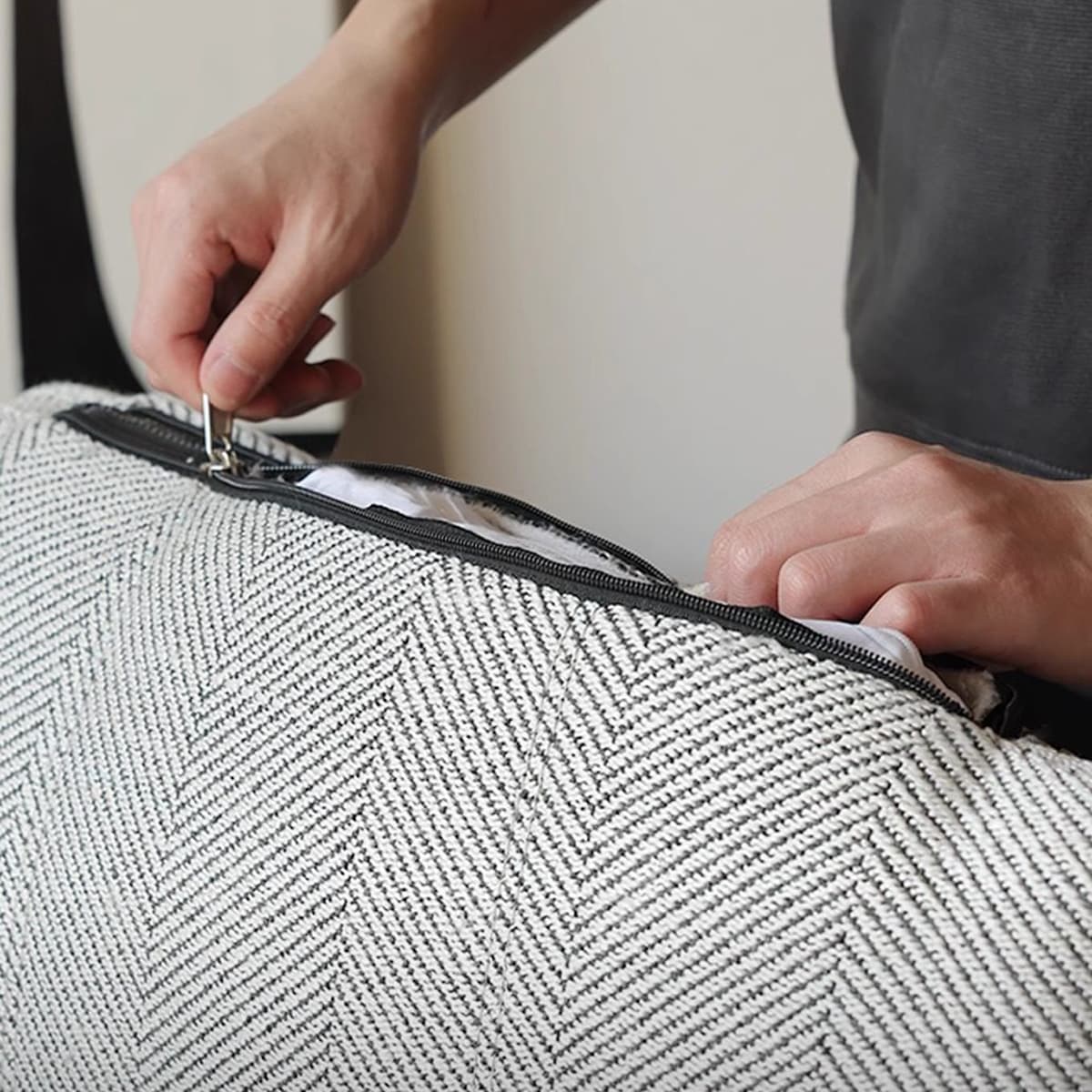 Removable Covers: The herringbone cushions feature discreet zippers (as seen in our detailed imagery), allowing for easy removal and professional cleaning.